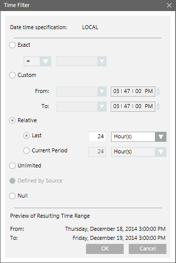 a. Right-click the Activities table, point to Filters and select Time Filter. The Time Filter dialog box displays.