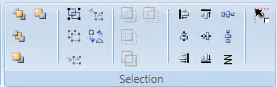 The Selection group options allow you to arrange, group, combine, and align elements on the canvas.