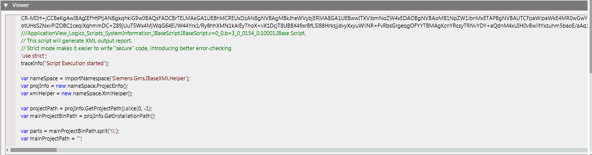 When a signed script is imported into the project, it becomes available for execution under Applications > Logics > Scripts. When you select the signed script: