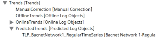 Also, if not already present, the regular time series predicted log object is added to System Browser under Applications > Trends > Predicted Log Objects.