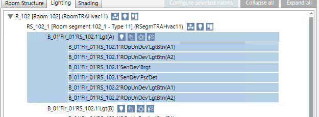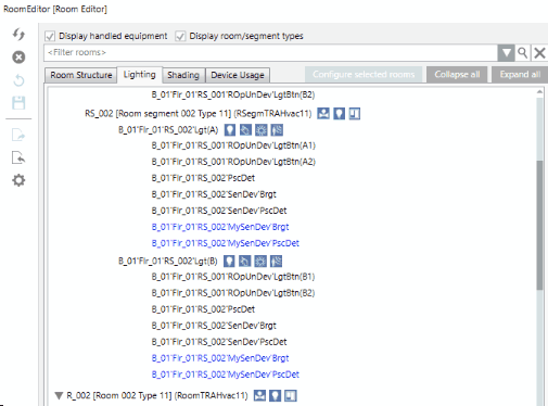 • There are device names in the room manager editor's room information list that deviate from default naming. Unknown device names are indicated in blue font.