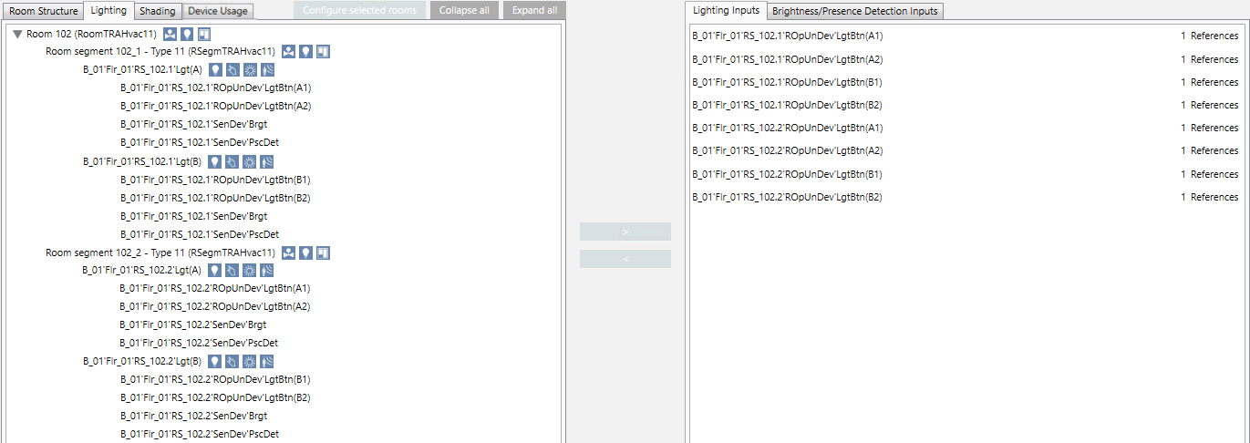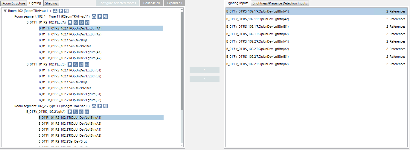 Scenario: You want to view the input references in the room information list. The description refers to lighting inputs, but can be used on any type of input.