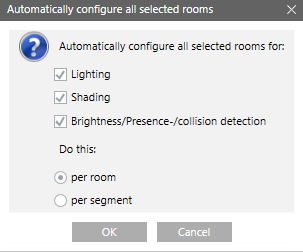 • The dialog box Automatically configure all selected rooms displays.