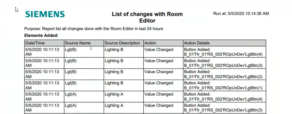 • The select report HQ Room Editor Changes displays.