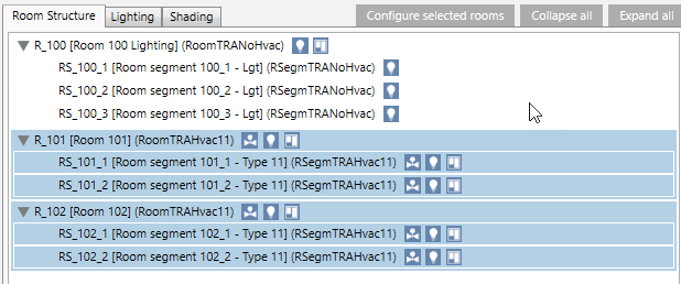 Scenario: You want to hide or show the room or segment type to improve the overview.