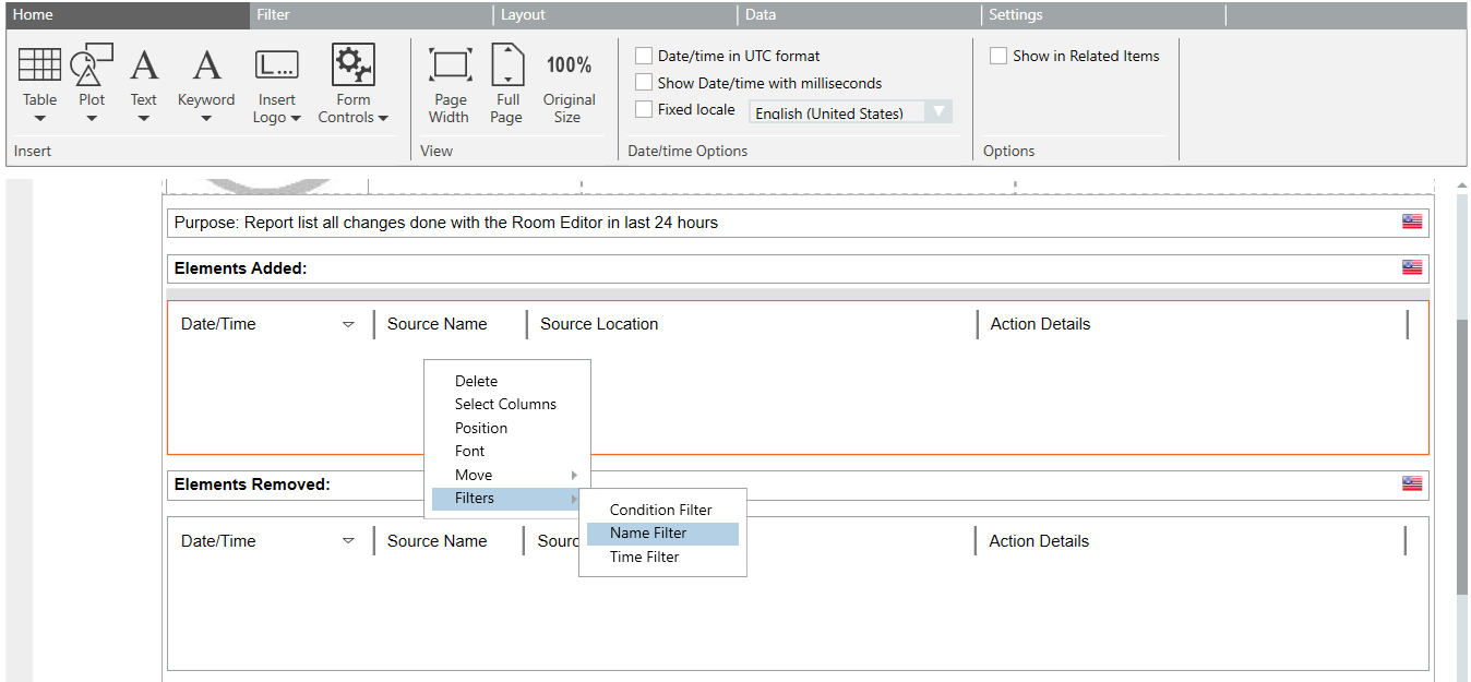 a. Right-click format template Elements Added (Date/Time) and select Filter > Name Filter.