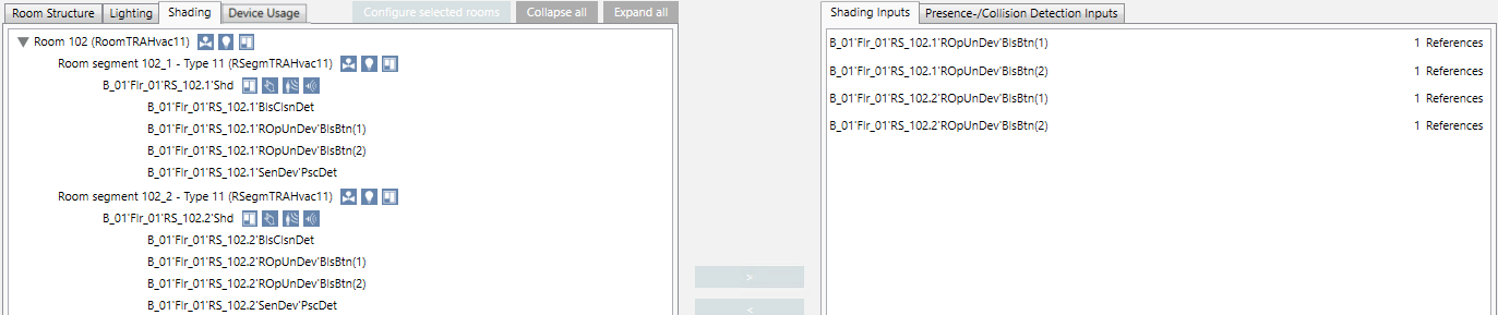 1. Repeat steps 5 to 8 for the area RS_102.2’Shd. Assign inputs RS_101.2‘ROpUnDev‘BlsBtn(1) and RS_101.2‘ROpUnDev‘BlsBtn(2).