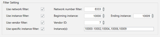 • To enable the discovery of all the devices within a range, select the Use instance Filter option. Then, enter your range of numbers in the Beginning instance and Ending instance fields.