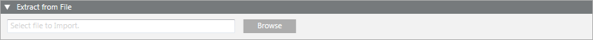 The Extract from File expander allows authorized experts to browse the file system and select the SiB-X file (CSV file) from which the import rules of a product family are extracted (see Extract Import Rules Data from a SiB-X File).