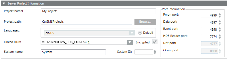 Select the Encrypted check box that is enabled only when the HDB that you have linked to the project is on the remote computer (SSL on TCP/IP connection). NOTE: Encrypting the communication between Server project and remote SQL Server slows down the performance!
