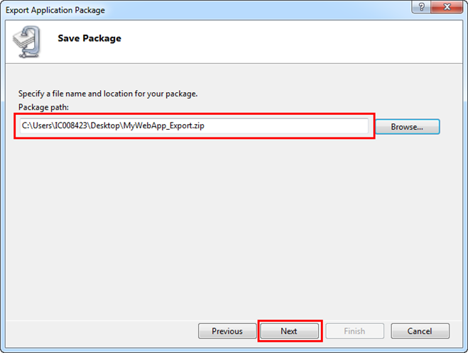NOTE: The Export Application menu displays only if you have installed Web Deploy.