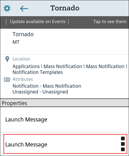 • To select a message template, select Applications > Notification > Notification Templates > Message Templates. Select the required message template from the list of available templates. For example, Tornado.