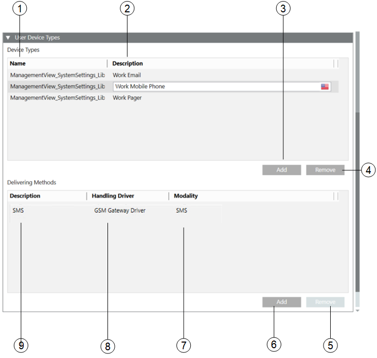 9 | Description | Displays the description of the delivery method for a selected user device type. |