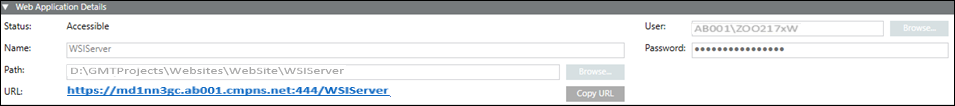 This expander allow you to configure the web services application details including the Name, Path, User, and Password.