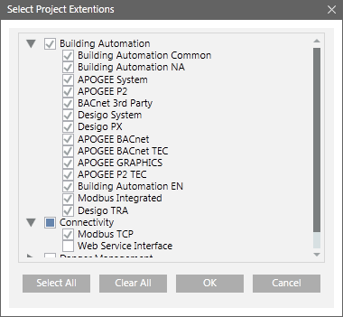 Select Project Extensions Dialog Box